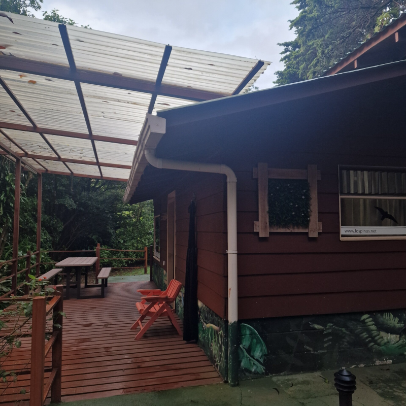 Na het onbijt reden we door naar ons nieuwe onderkomen, waar we meteen al mochten inchecken. De vrouw van de receptie ging voor ons uit. Het houten huisje lag verscholen in de natuur. Op de veranda aan de voorzijde stond een gezellige picknicktafel. Ik draaide de sleutel in de duur en ging naar binnen. Het voelde alsof ik terug in de tijd stapte. De donker bruine plavuizen vloer, de antieke meubels en de groene gordijnen langs de ramen gaven een kneuterig gevoel van een houthakkers huisje midden in het bos. "There is a heater you can use, my advice buy some wine and chocolate and settle down" zei de vrouw lachend terwijl ze wegliep. Misschien niet eens zo'n slecht idee, het was inmiddels gaan regenen en de temperatuur was hier in de bergen gedaald naar een graad of vijftien.