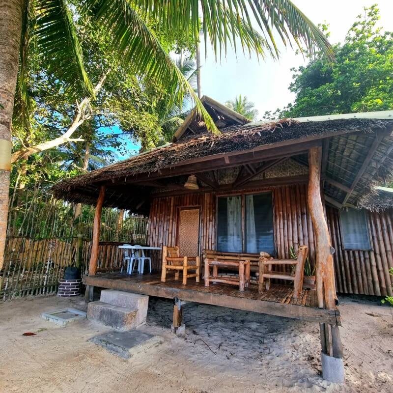In de middag halen we een fles rum voor nog geen drie euro. Tanduay is de lokale rum van de Filipijnen. We kopen ook nog wat flesjes sprite, een citroen en chips. Rond een uur of vijf in de middag zie ik Jonas & Nele aan komen lopen op het strand. Ik zwaai naar hen zodat zij weten waar we zitten. We nemen plaats op de bamboe bank en stoelen op de veranda van onze hut. De hut, maar ook het gehele interieur is gemaakt van bamboe. De kast, tafels, stoelen, kaptafel. We slapen zelfs in een van bamboe gemaakt bed, cool hè? Het is een gezellige avond met Jonas & Nele. Terwijl we een lekker drankje drinken, kijken we naar de zon die langzaam verdwijnt in de oceaan.