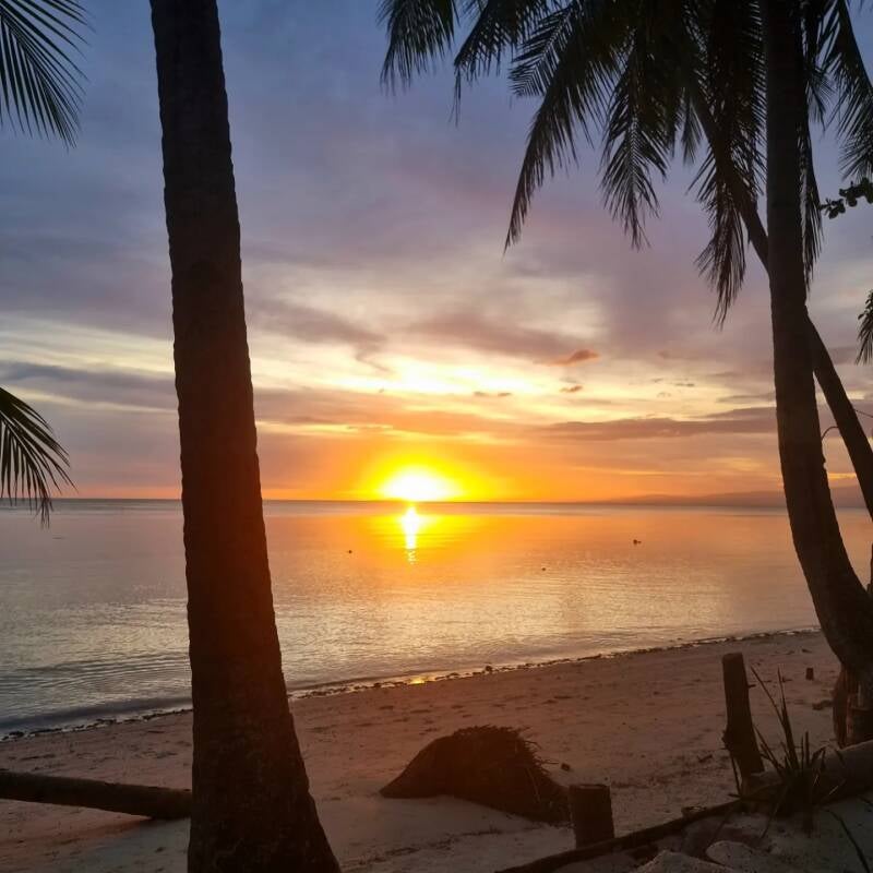 Het Duitse stel Jonas & Nele die we ontmoet hebben in onze homestay vertrekt ook naar het eiland Siquijor, dus delen we met elkaar een taxi naar de haven. In anderhalf uur tijd varen we naar het eiland Siquijor. Daar staat de tuktuk naar het hotel al op ons te wachten. Jonas en Nele rijden met ons mee. Opgepropt met al onze tassen nemen we allen plaats in de kleine tuk tuk. De backpacks worden op het dak geplaatst. De enige die moeite heeft om erin te passen is Jurgen met zijn lange benen haha. Het hotel van Jonas en Nele zit niet ver van ons hotel vandaan. We wisselen nummers uit en vragen of ze het leuk vinden morgen bij ons een drankje te komen doen bij zonsondergang.